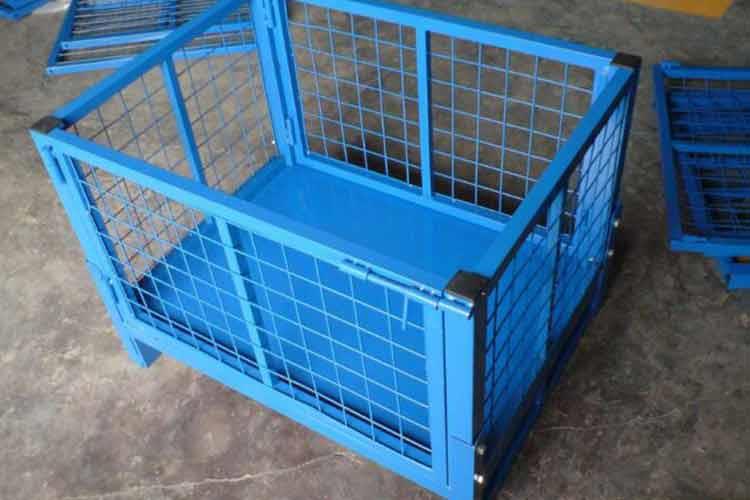 仓储笼的主要原材料是高线拉成的钢丝,一般丝径是5mm,6mm,6.4mm。网片焊接的网目间距一般为50×100,100×100,50×50。仓储笼底部采用U型钢焊接而成,U型钢是冷轧带钢轧机轧制而成,底部四角采用冲压件一次冲制而成。仓储笼采用Q195高线作为原材料,经冷拔成型材。再通过碰焊形成半成品网片。在制作成网片后,可采用镀锌或喷塑进行表面处理(仓储笼大多数采用镀锌处理),表面处理完毕后就可以进行组装,即可制作成成品。